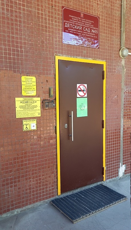 При входе на стене с левой стороны от входной двери в здание расположена кнопка вызова для вызова сотрудника учреждения для оказания помощи инвалидам (сопровождение до места оказания услуг). ФОТО При входе с правой стороны весит табличка с информацией об учреждении, исполненная шрифтом Брайля для инвалидов по зрению. ФОТО Входная дверь выделена контрастным цветом для инвалидов по зрению. ФОТО Порог не соответствует нормативам «СП 59.13330.2016. Свод правил. Доступность зданий для маломобильных групп населения. Актулизированная редакция СНиП 35-01-2001» |