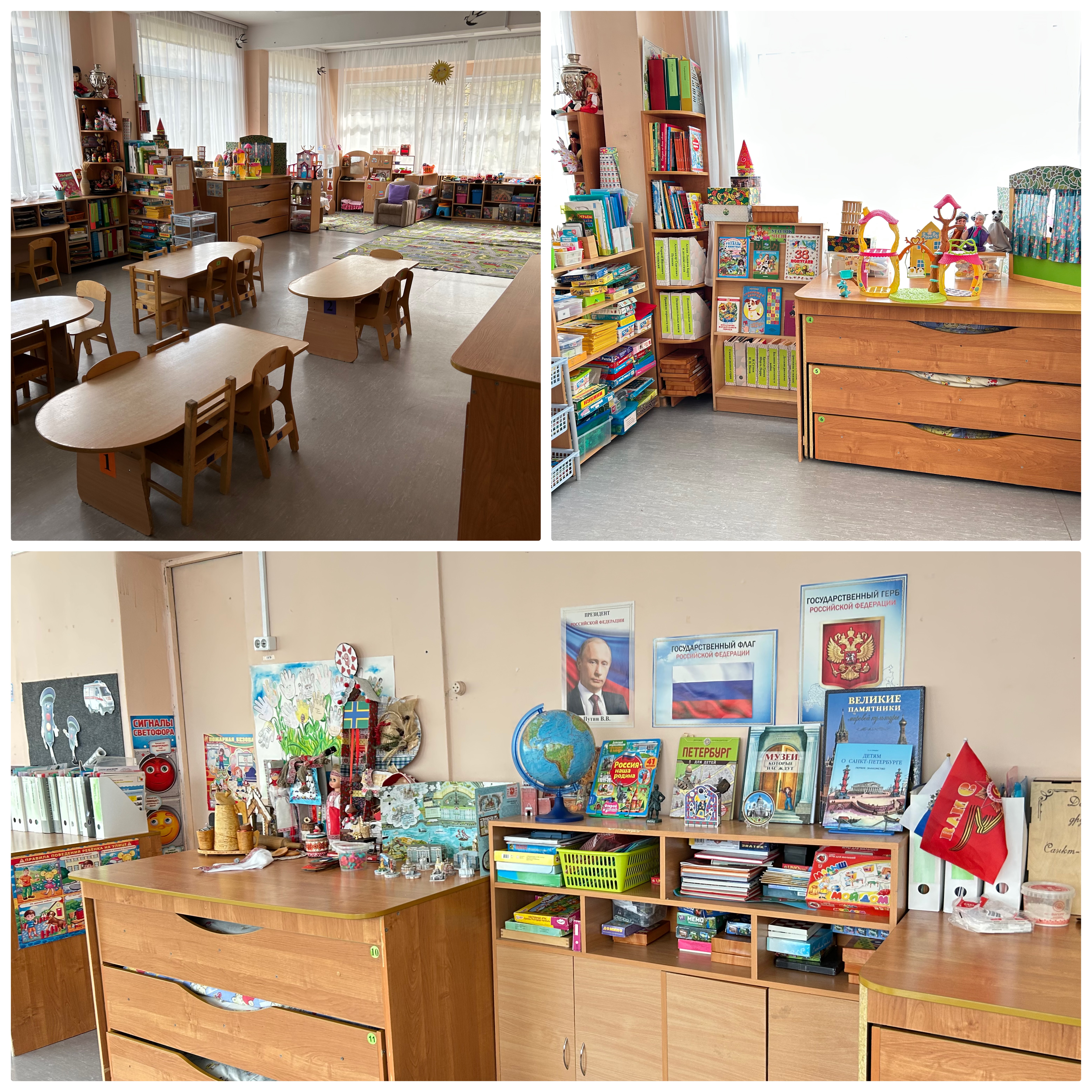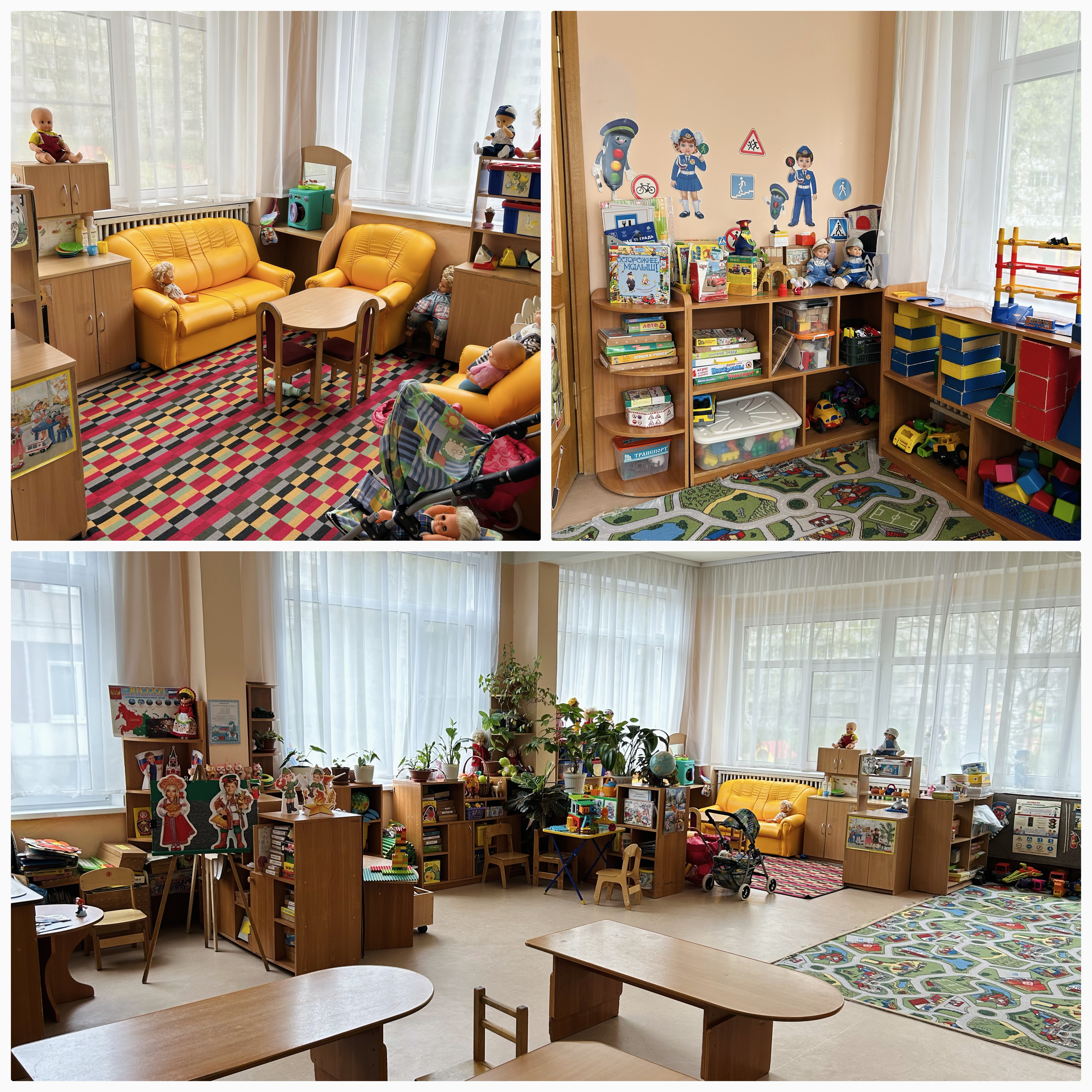 Групповые помещения (кабинеты) оборудованы учебной мебелью (столы, стулья) по количеству обучающихся в группе, столом и стулом для педагога, игровой мебелью, шкафами для пособий и атрибутов, техническими средствами Групповая состоит из развивающих уголков: спортивный, театрализованный, конструирования, рисования, чтения художественной литературы, музыкальный, природы, безопасности, экспериментирования, математики, развития речи и т.д. Также в групповых находятся маркерные и магнитные доски. В 2-х группах среднего и старшего дошкольного возраста имеются телевизоры. Игрушки безвредные для здоровья детей, в соответствии с санитарно-эпидемиологическими требованиями, могут быть подвергнуты обработке и дезинфекции. В каждой возрастной группе имеется необходимое оборудование для обучения и воспитания детей, дидактические игры, пособия, методическая и художественная литература, необходимые для организации разных видов деятельности детей. Созданная в учреждении развивающая предметно-пространственная среда отвечает следующим характеристикам: - Насыщенность (наличие средств обучения и воспитания (в том числе технических), материалов, в том числе игровых, спортивных, оздоровительного оборудования, инвентаря, соответствующих возрастным возможностям детей и содержанию Программы). - Трансформируемость (обеспечивает возможность изменений РППС в зависимости от образовательной ситуации, в том числе от меняющихся интересов и возможностей детей). - Полифункциональность (обеспечивает возможность разнообразного использования составляющих предметной среды (детская мебель, маты, мягкие модули, ширмы и т.д.; также предметы, не обладающие жестко закрепленным способом, в том числе природные материалы). - Вариативность (обеспечивается наличием различных пространств в ДОУ и в группе конкретно, а также разнообразных материалов, игр, игрушек и оборудования, обеспечивающий свободный выбор детей; игровой материал периодически сменяется, дополняется новыми предметами, стимулирующих игровую, двигательную, познавательную и исследовательскую активность детей). - Доступность (определяет возможность свободного доступа для воспитанников всех помещений, где осуществляется образовательная деятельность; свободный доступ детей к играм, игрушкам, материалам, пособиям, обеспечивающим все основные виды детской активности; сохраняется исправность материалов и оборудования). - Безопасность (определяется соответствием всех требований по обеспечению надежности и безопасности их использования).