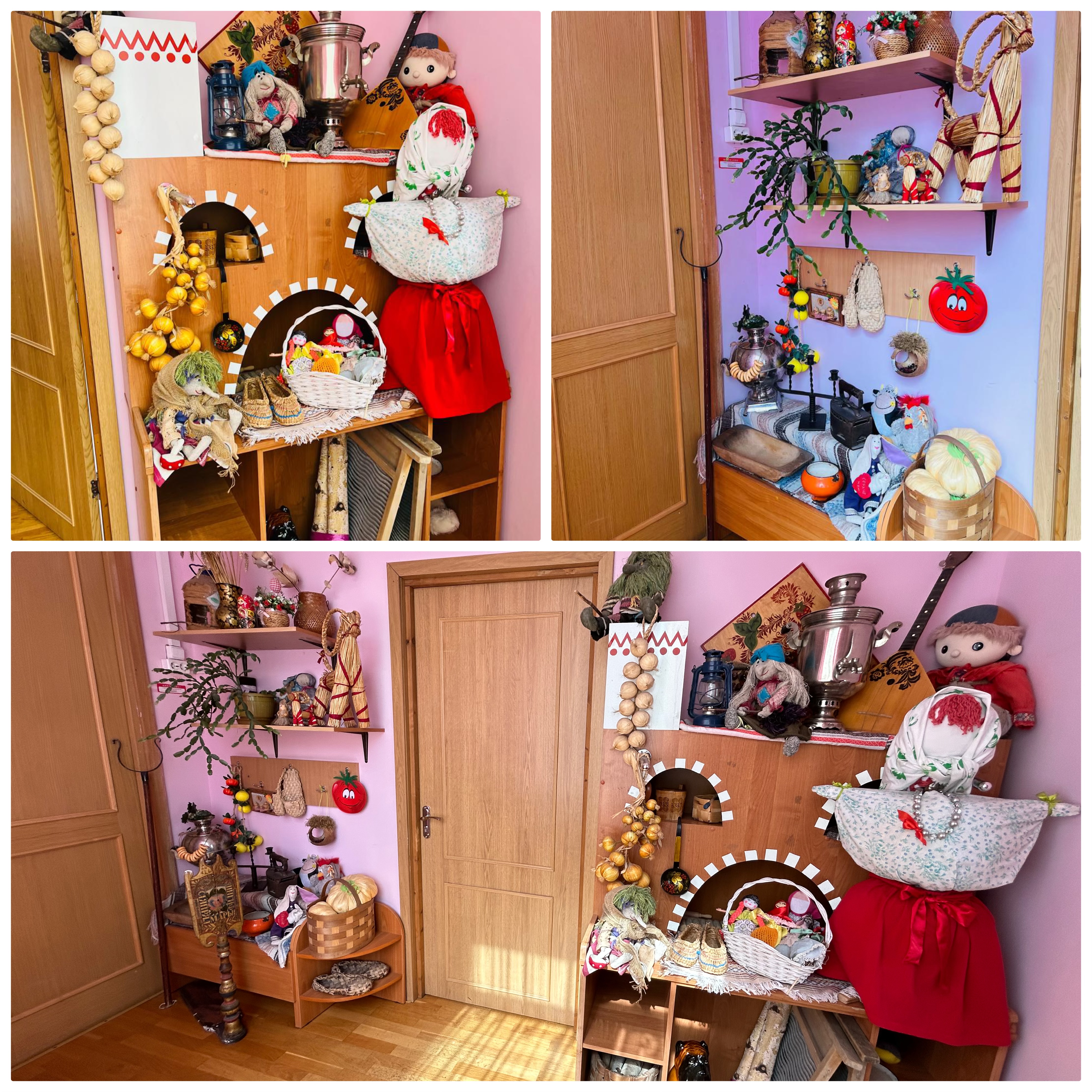 Стеллаж "Русская печка" -1 шт., стеллаж модульный -1 шт., полка угловая - 1 шт., предметы русского быта, народно-прикладного искусства. |