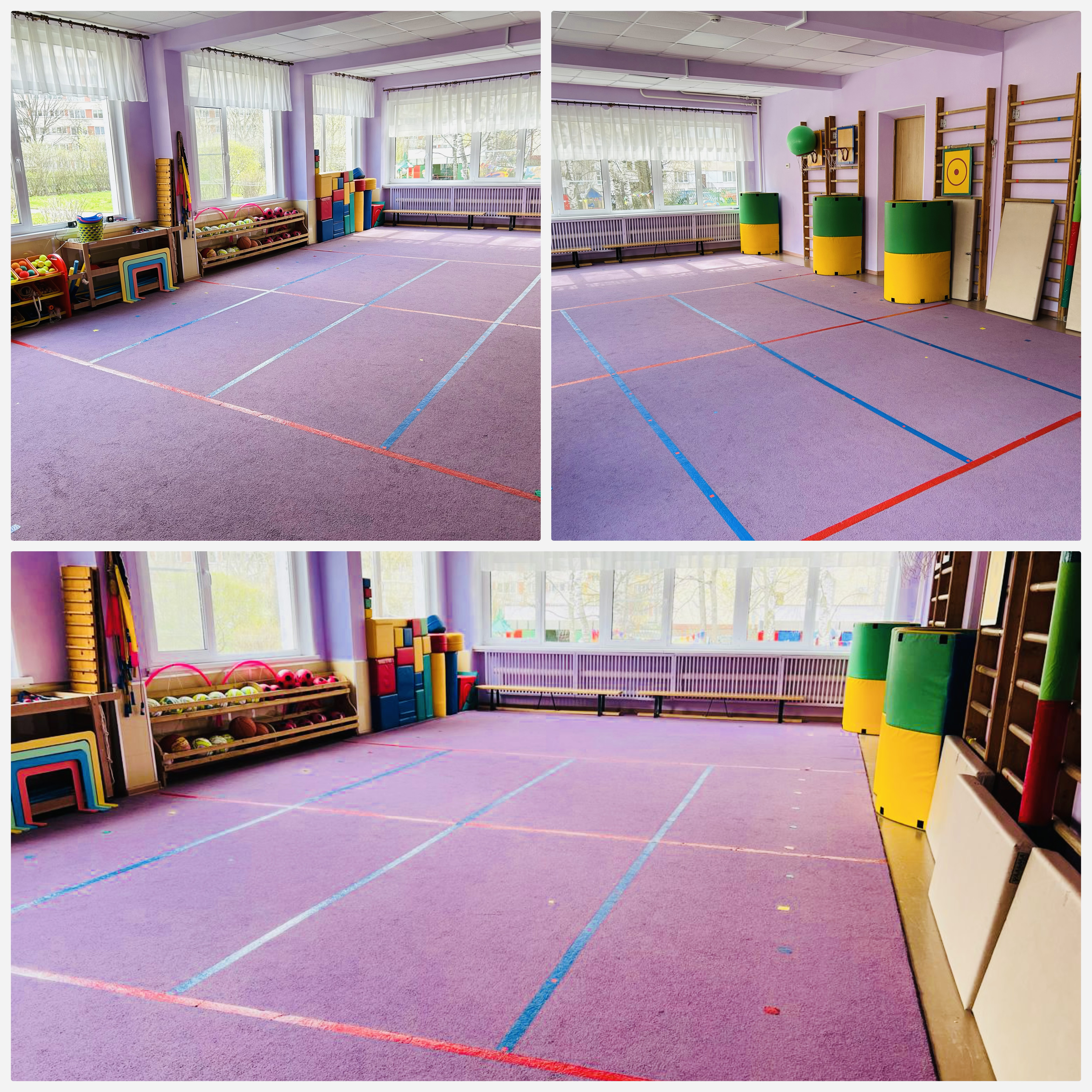 Стенка гимнастическая -8 шт., лабиринт игровой «Альма» - 1 шт., маты - 3 шт., стеллаж для спортинвентаря – 3 шт., ковровое покрытие (54 кв. м), 1 шт., скамья гимнастическая -2 шт., ворота для подлезания, скакалки, мячи, обручи, музыкальный центр. |