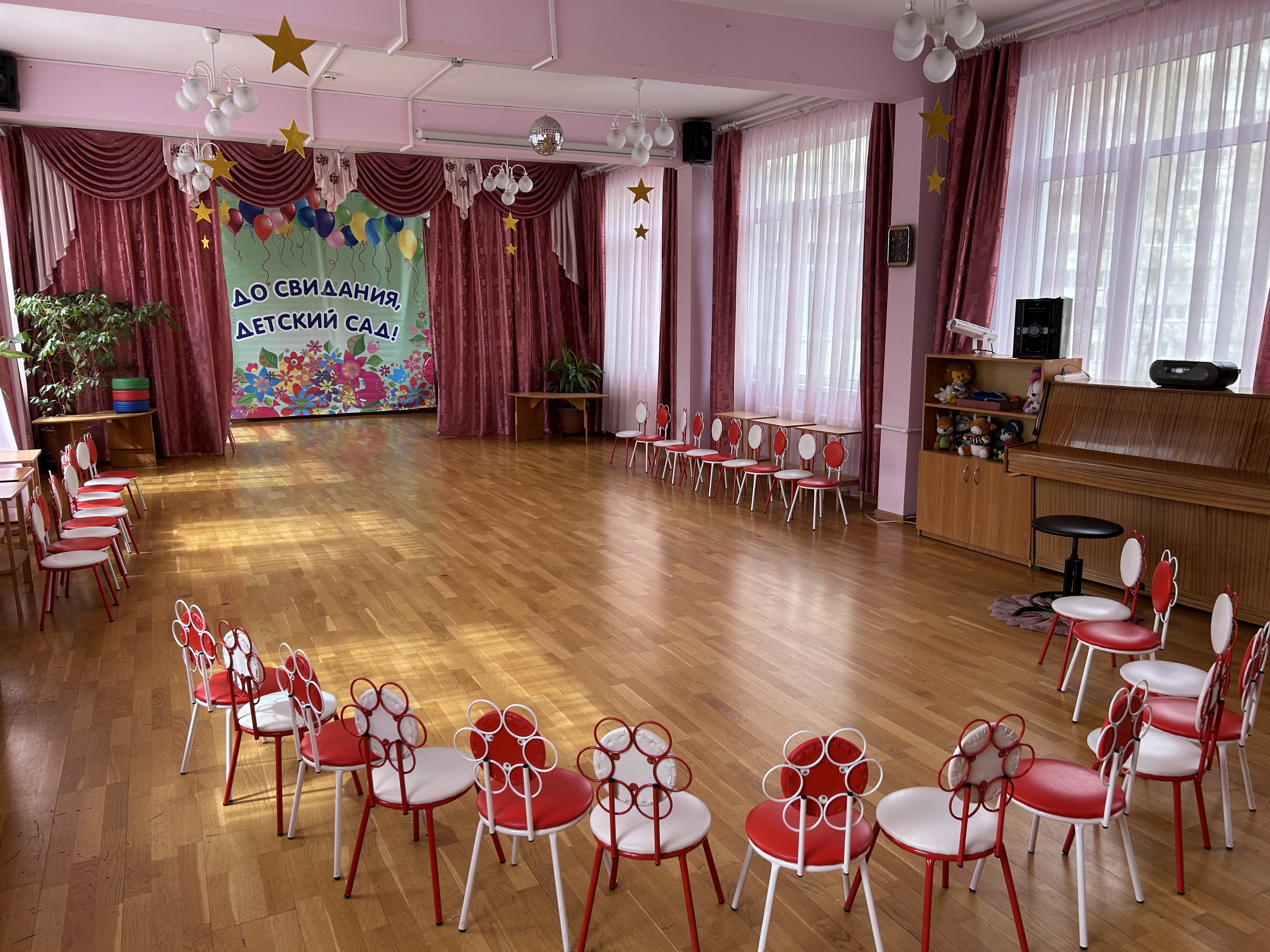 Стул детский «Ромашка» - 50 шт., пианино «Красный Октябрь» -1 шт., синтезатор Casio CTK-4200 – 1 шт., банкетка «Матрёшка» (из 3-х банкеток) - 3 шт., музыкальный центр «Panasonic» – 1 шт., колонки – 2 шт., мультимедийный проектор – 1шт., экран мобильный Projecta – 1 шт., ширма 3-х секционная «Театрал» - 1 шт., методические материалы по музыкальному развитию детей, атрибуты для музыкальных игр-драматизаций, детские музыкальные инструменты (металлофоны, ксилофоны, барабаны, колокольчики, треугольники, маракасы, бубны, гармошки, погремушки и т.п.), музыкально-дидактические игры. |